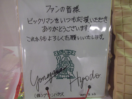 ※ゼウスと一緒に撮ることも可能。・サイン会 名前を入れてもらえるので、本名+くん付け指定にしました。ビックリマンは子供の頃に熱狂したものですから、さんや様じゃ違和感があります。
